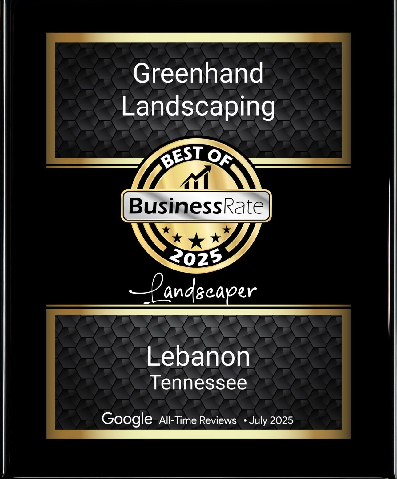 Proudly recognized as Best of BusinessRate – Landscaper for two years in a row, Greenhand Landscaping is trusted by homeowners for exceptional quality and service. This award reflects our consistent commitment to excellence in Lebanon, Tennessee.